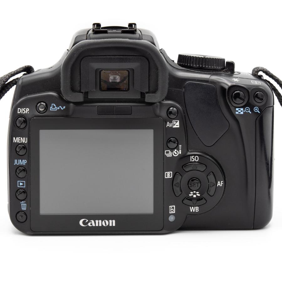 Canon EOS 400D je amatérska digitálna zrkadlovka vybavená 10 MPix CMOS snímačom formátu APS-C s natívnou citlivosťou ISO 100-1600, 9-bodovým AF systémom, 2,5“ LCD monitorom.