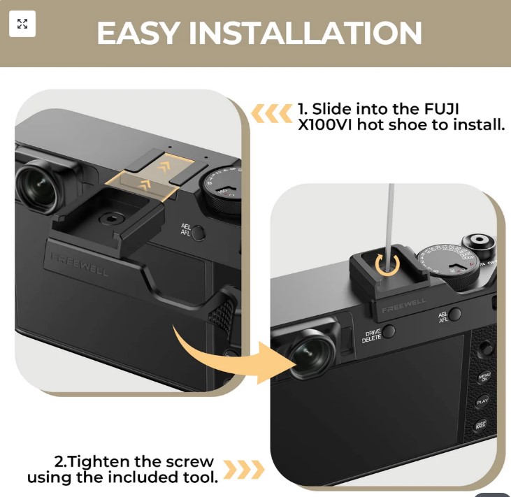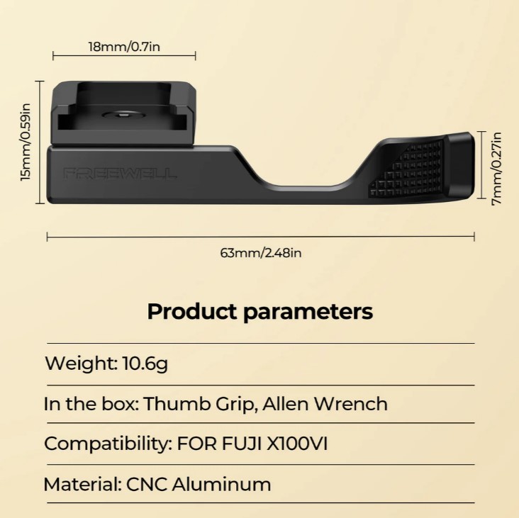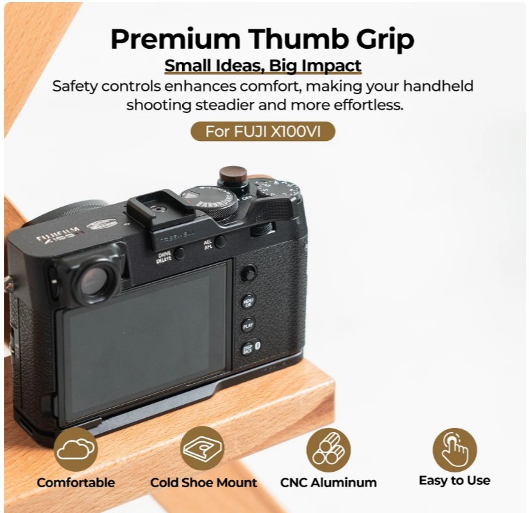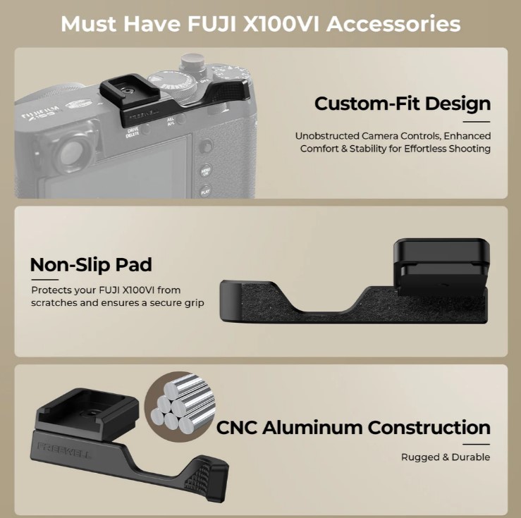 - Freewell Fuji X100VI Thumb Grip with Cold Shoe Mount (Black)
