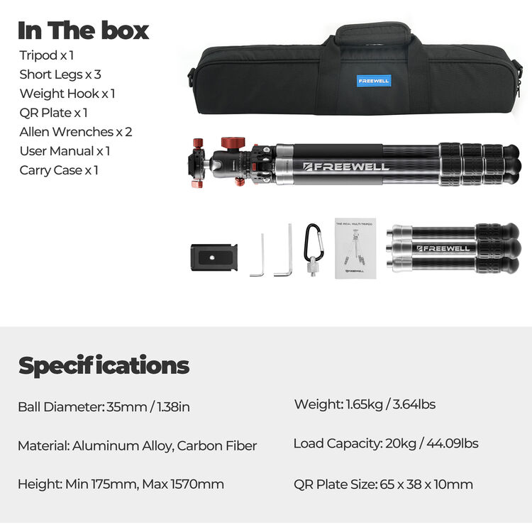- Freewell FW-T2 Carbon Real Multi Tripod 5-in-1
