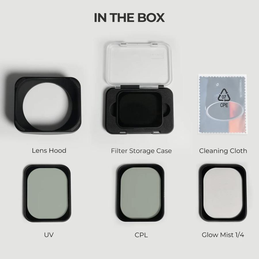 Táto slnečná clona objektívu je vybavená 49mm filtrom CPL/Black Glow Mist. Jednoduchým preklopením slnečnej clony môžete rýchlo vymeniť filter pre bezproblémové snímanie.