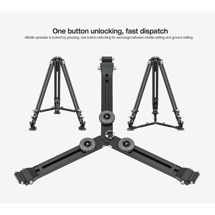 Statív je navrhnutý tak, aby zvládol aj tú najnáročnejšiu prácu a ponúka všetko, čo potrebujete na prácu na vysokej profesionálnej úrovni. Je vybavený middle spreader uzamykaním. Vďaka 3-uhlým selektorom získate dostatočný rozsah spreaderu. Teleskopický ground a middle spreader 2v1 je navyše vybavený mechanizmom výberu 3 uhlov pre ľahké nastavenie.