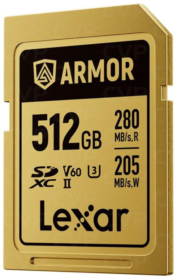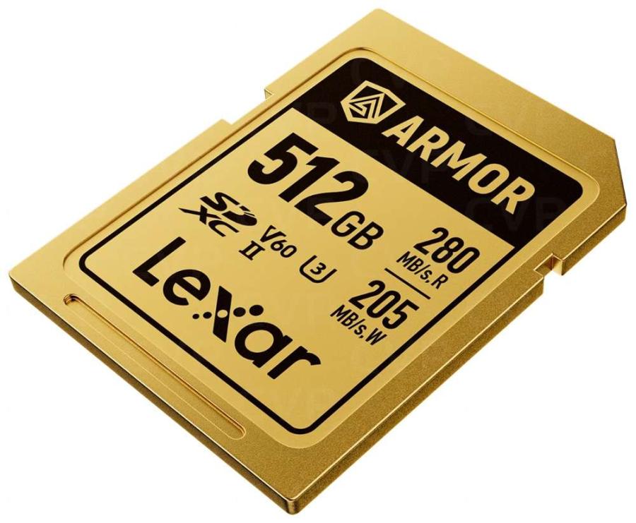 • Lexar SDXC 512GB ARMOR Gold UHS-II U3, Stainless Steel, IP68 R280/W210 (V60)