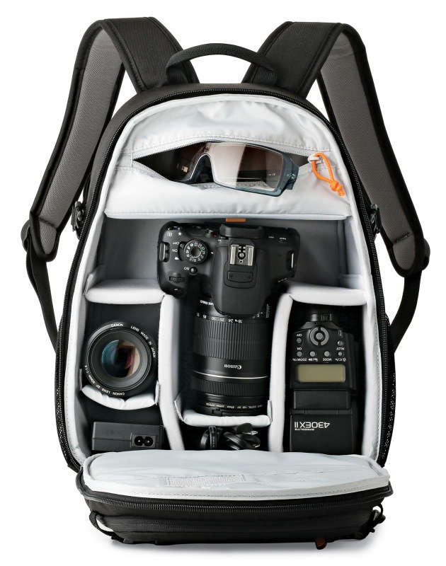 Kapacita batohu: CSC, alebo DSLR so základným objektívom, 3-4 dalšie objektívy, blesk, statív, príslušenstvo, tablet (do 10“), osobné veci