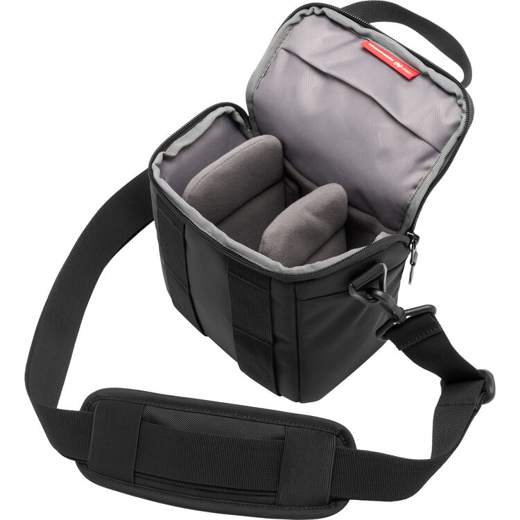 Poklop sa otvára od tela, nič vám tak pri vyťahovaní fotoaparátu nebude prekážať. Taška prichádza tiež so zárukou systému Manfrotto Protection System. Karty a batérie je možné vložiť do dvoch vnútorných vreciek, takže si môžete byť istí, že je všetko bezpečne uložené.