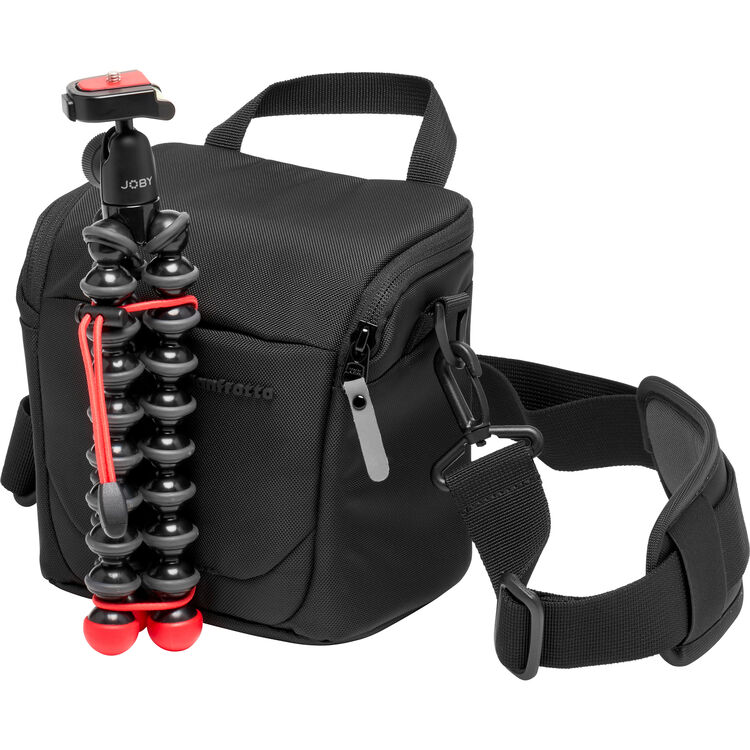 Vďaka prednému červenému bungee káblu môžete na brašňu upevniť svoj obľúbený malý statív.