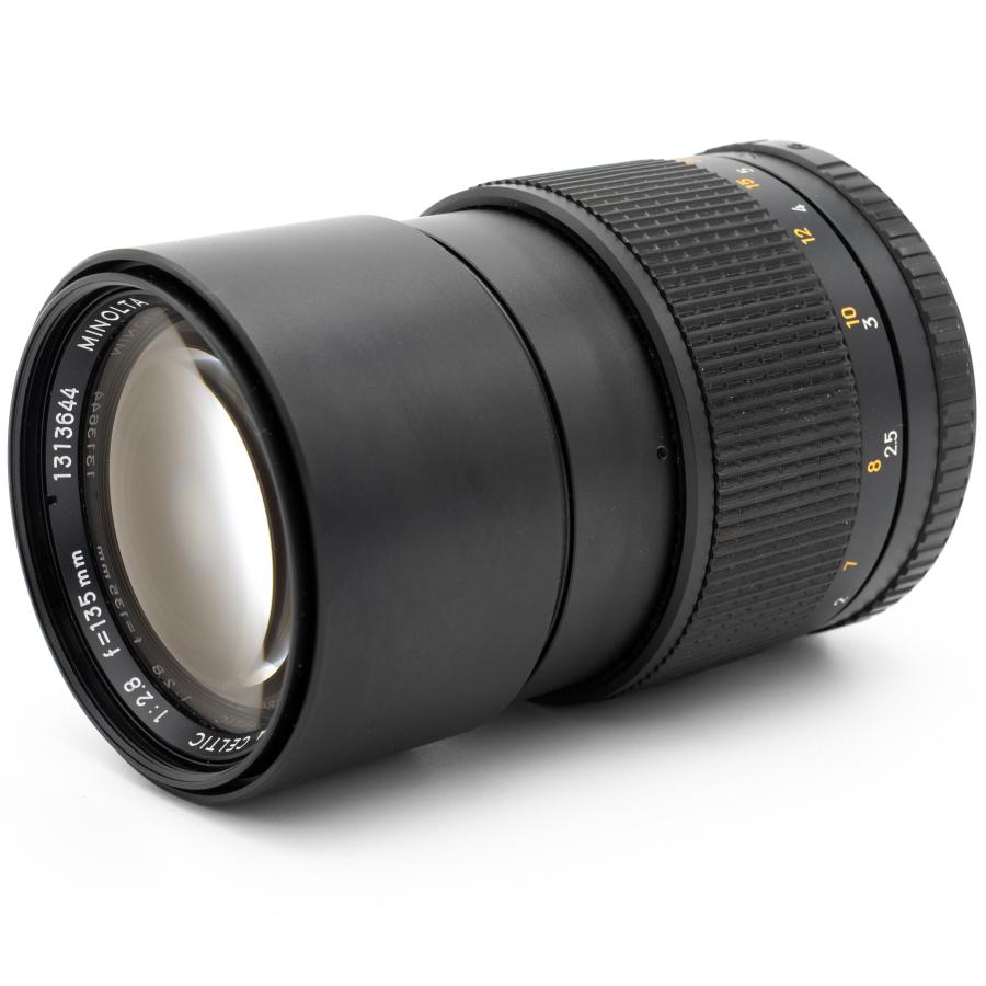 Portrétny teleobjektív s pevným ohniskom 135mm a vysokou svetelnosťou f/2.8 pre kinofilmové fotoaparáty s bajonetom Minolta MD.