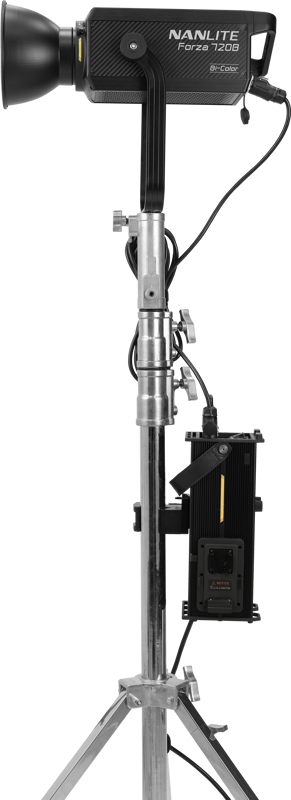 Forza 720B môže fungovať zo štandardnej elektrickej zásuvky alebo bezdrôtovo s dvoma V-Mount batériami 14,8 V alebo 26 V (predávajú sa samostatne), ktoré sa montujú na boky riadiacej jednotky pre jednoduchý prístup. Riadiaca jednotka má aj množstvo úchytov na pripevnenie bezpečnostných lán pri montáži.