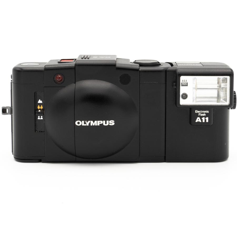 Automatický mimoriadne kompaktný fotoaparát na kinofilm s manuálnym navíjaním filmu, automatickým bleskom, zónovým ostrením, autoexpozíciou a kvalitným pevným objektívom 35mm f/3.5. Blesk A11 je odnímateľný, čím sa Olympus XA stáva jedným z najmenších kinofilmových aparátov na svete.