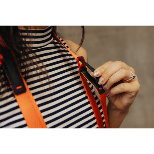 - Kĺže po oblečení: Popruh Peak Design Leash™ je vyrobený jemným úpletom z materiálu podobného bezpečnostnému pásu v aute, ktorý ľahko kĺže po oblečení a umožňuje rýchly prístup k fotoaparátu a celodenný komfort i s ťažšími fotoaparátmi.