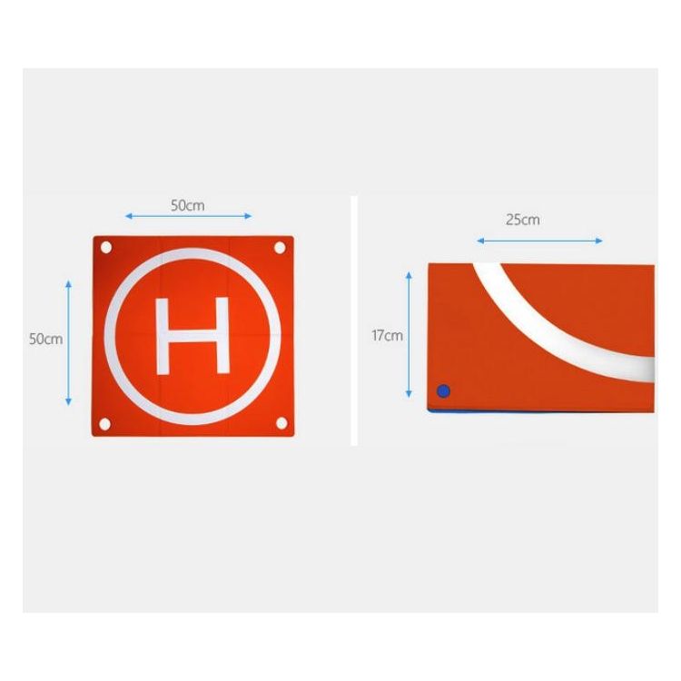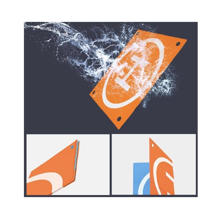 Táto štvorcová pristávacia podložka s rozmermi 50 x 50 cm je určená pre malé a stredne veľké drony a možno ju používať vonku na rôznych typoch terénu. Je vyrobená z vysoko odolného PU materiálu, ktorý je vodotesný (nie ponorný), odolný voči plesniam a hubám a odolný voči vyblednutiu UV žiarenia.