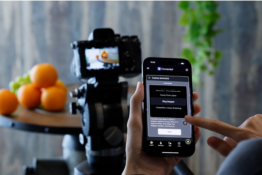 "Ring function" je nastavenie ostriaceho prstenca na manuálne ostrenie alebo na ovládanie clony. Režimy sa prepínajú tlačidlom a dá sa nastaviť prepínanie stlačením alebo podržaním 1 sekundu.