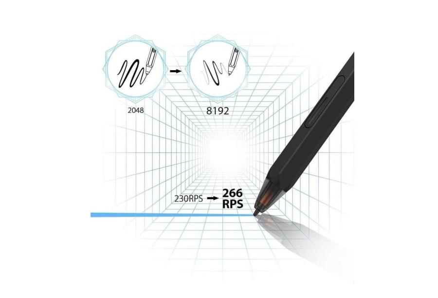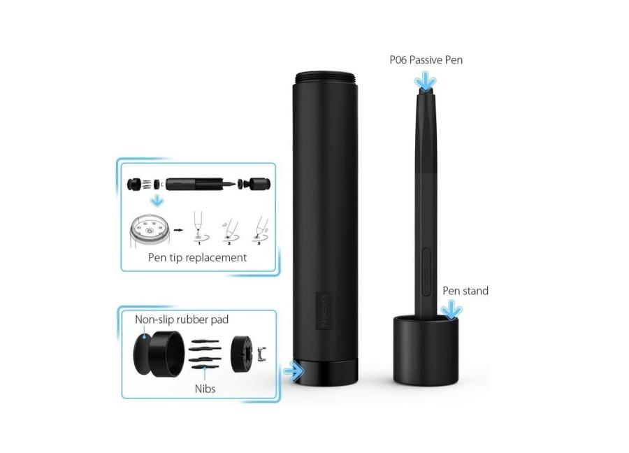 Nové pokročilé pasívne pero (stylus) XPPen P06 funguje ako tradičná ceruzka, špeciálne navrhnutá pre tablet Deco 02. Kombinuje módny a technický štýl dizajnu s pohodlným úchopom pre vysokú efektivitu práce. Medzi ďalšie dizajnové prvky pera patrí jedinečný šesťuholníkový dizajn, protišmykový flexibilný úchop, ktorý sa nelepí, a čiastočne priehľadný hrot, ktorý je zakončený gumovou špičkou. Grafický tablet Deco 02 ponúka pôsobivých 8192 úrovní citlivosti tlaku pera, čo umožňuje rýchly a plynulý pohyb pri každom ťahu.