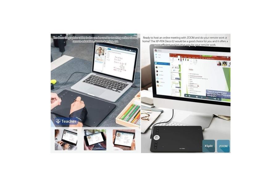 Vďaka maximálnej rýchlosti odozvy 266 RPS sú čiary plynulejšie a práca rýchlejšia. Tablet sa dodáva kompletne potiahnutý kresliacou fóliou na zvýšenie odolnosti a má hrúbku len 9 mm, takže sa veľmi ľahko prenáša. Kresliaci tablet Deco 02 je vybavený šiestimi okrúhlymi, prispôsobiteľnými klávesovými skratkami, ktoré sú ľahko prístupné končekmi prstov a vytvárajú vysoko ergonomickú a pohodlnú pracovnú platformu. S pracovnou plochou s rozmermi 10 × 5,63 palca (254 × 143 mm) ponúka dostatok priestoru na jednoduché kreslenie a tvorbu. Je navrhnutý pre pravákov aj ľavákov a môžete ľahko prepínať medzi režimom pre pravákov a ľavákov. Ovládač XPPen podporuje operačné systémy Windows 10/8/7 a Mac OS vo verzii 10.10 a vyššej, ale je kompatibilný aj s populárnymi umeleckými softvérmi, ako sú Photoshop, SAI, Illustrator, Clip Studio a ďalšie.